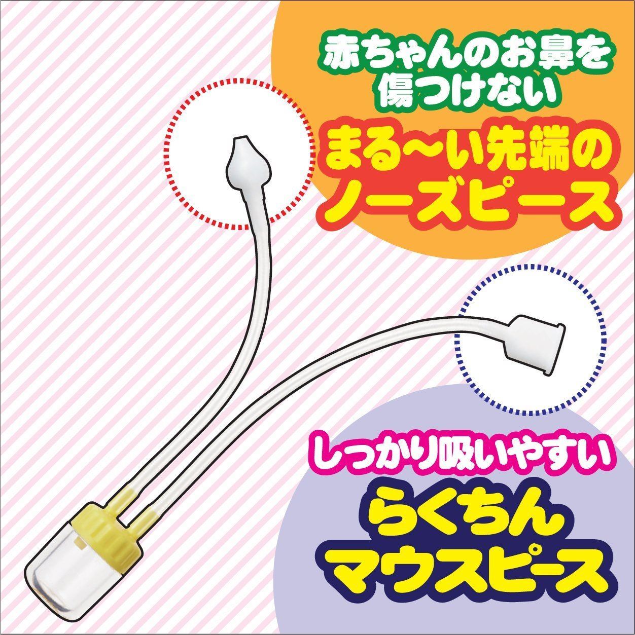 特点:由于妈妈嘴的吸力可以调节,所以可以很柔和的轻松吸掉宝宝鼻腔里面的鼻水。因为有两根吸管,即使宝宝在睡觉时用,也不会让鼻水流到妈妈的嘴里。吸到的鼻水会存在罐底,不会返流到宝宝的鼻腔,接触到鼻子的先端是大圆头,不管宝宝怎么动,什么姿势,都不会伸到宝宝的鼻腔后面,从而不会伤到宝宝娇嫩的鼻粘膜。可以安心的使用。罐子是透明的,可以清楚的看到吸到的鼻水状况。用抗菌材料制做的很卫生。从新生儿到大人均可使用。