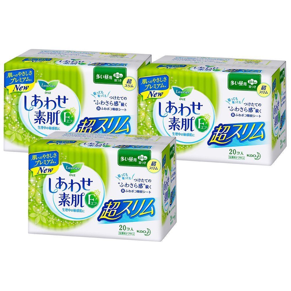 乐而雅F系列 幸福素肌 超薄带护翼款 量多白天用 22.5cm 20个×3包