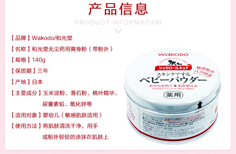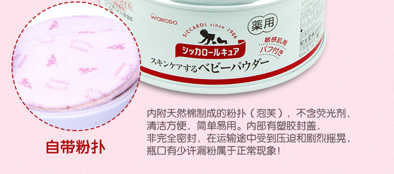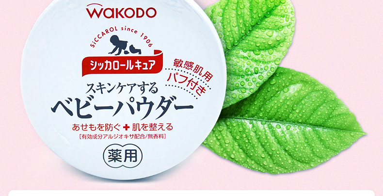 和光堂WAKODO无尘桃叶爽身粉/痱子粉敏感肌肤140g