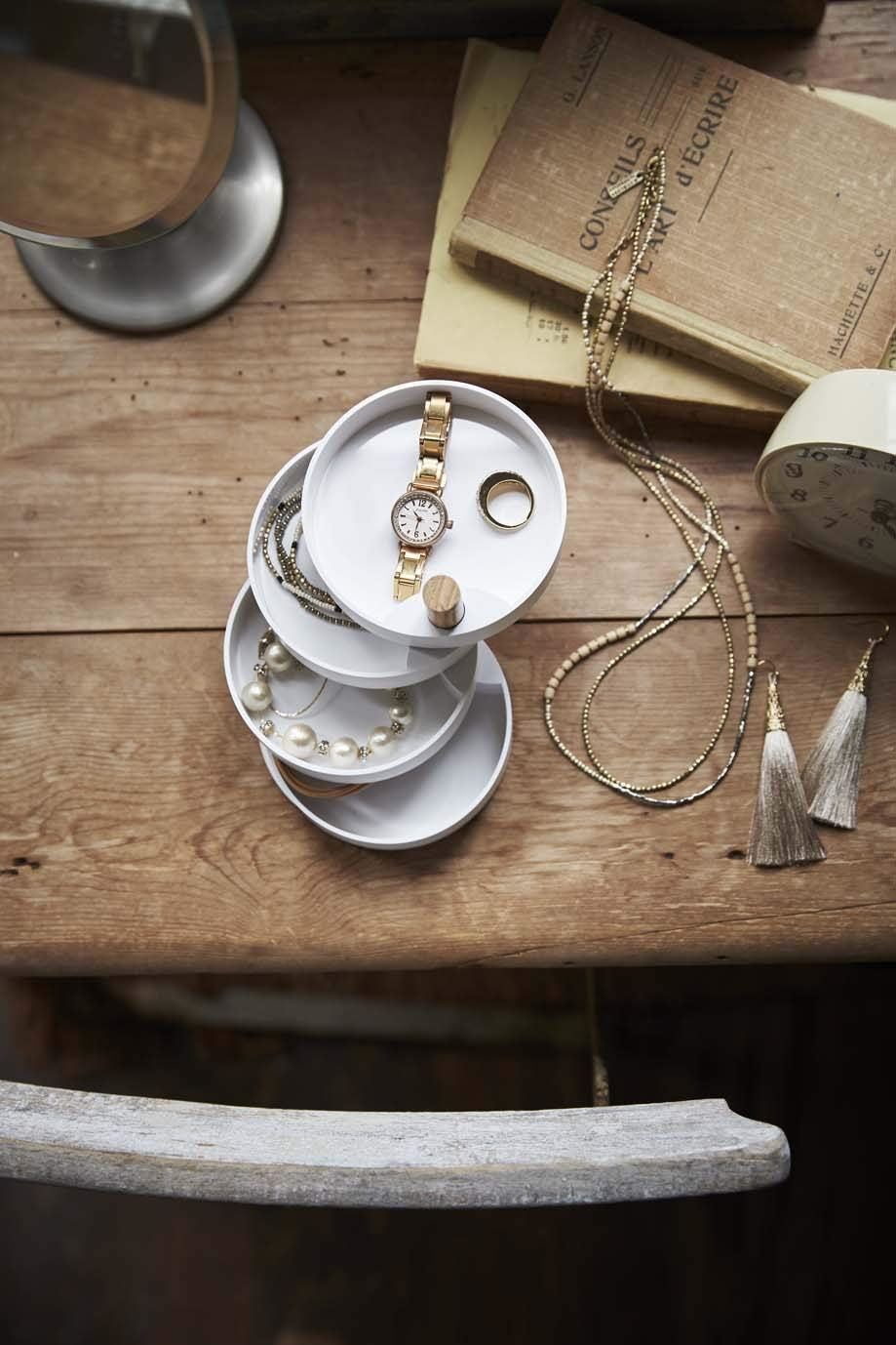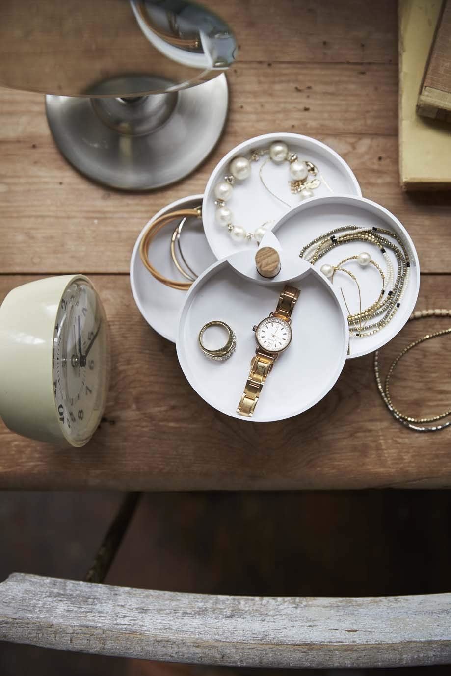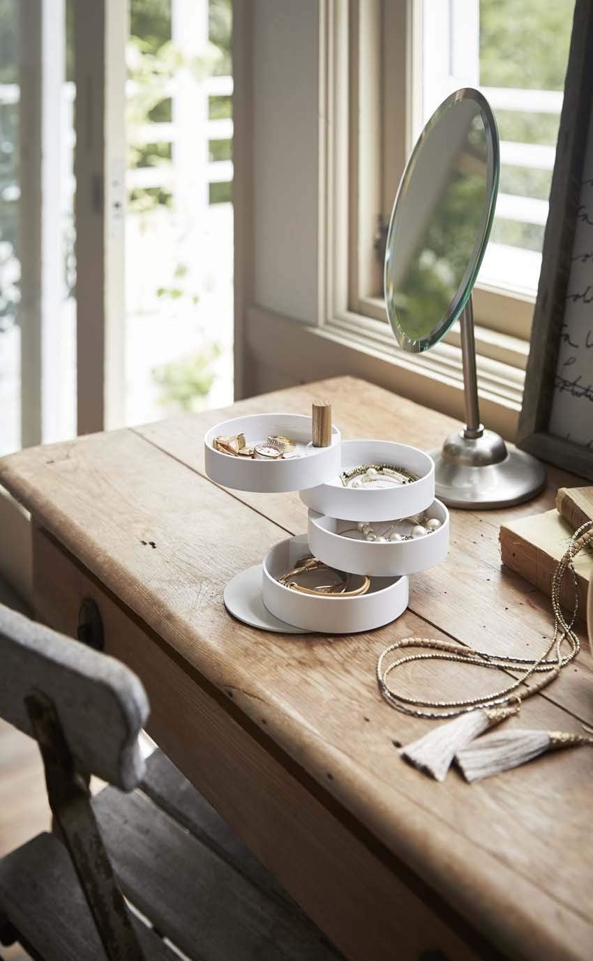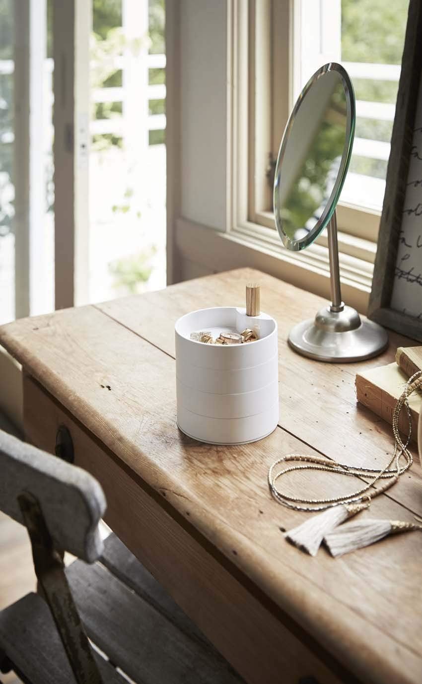 山崎实业 首饰收纳盒 4层可旋转立体桌面收纳盒 白色 3408