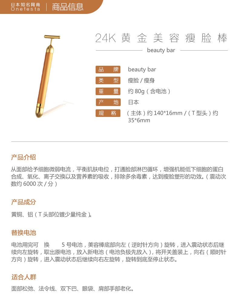 日本BEAUTY BAR 24K 美容按摩棒
