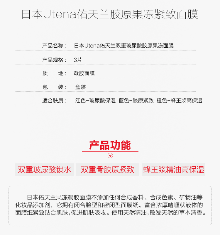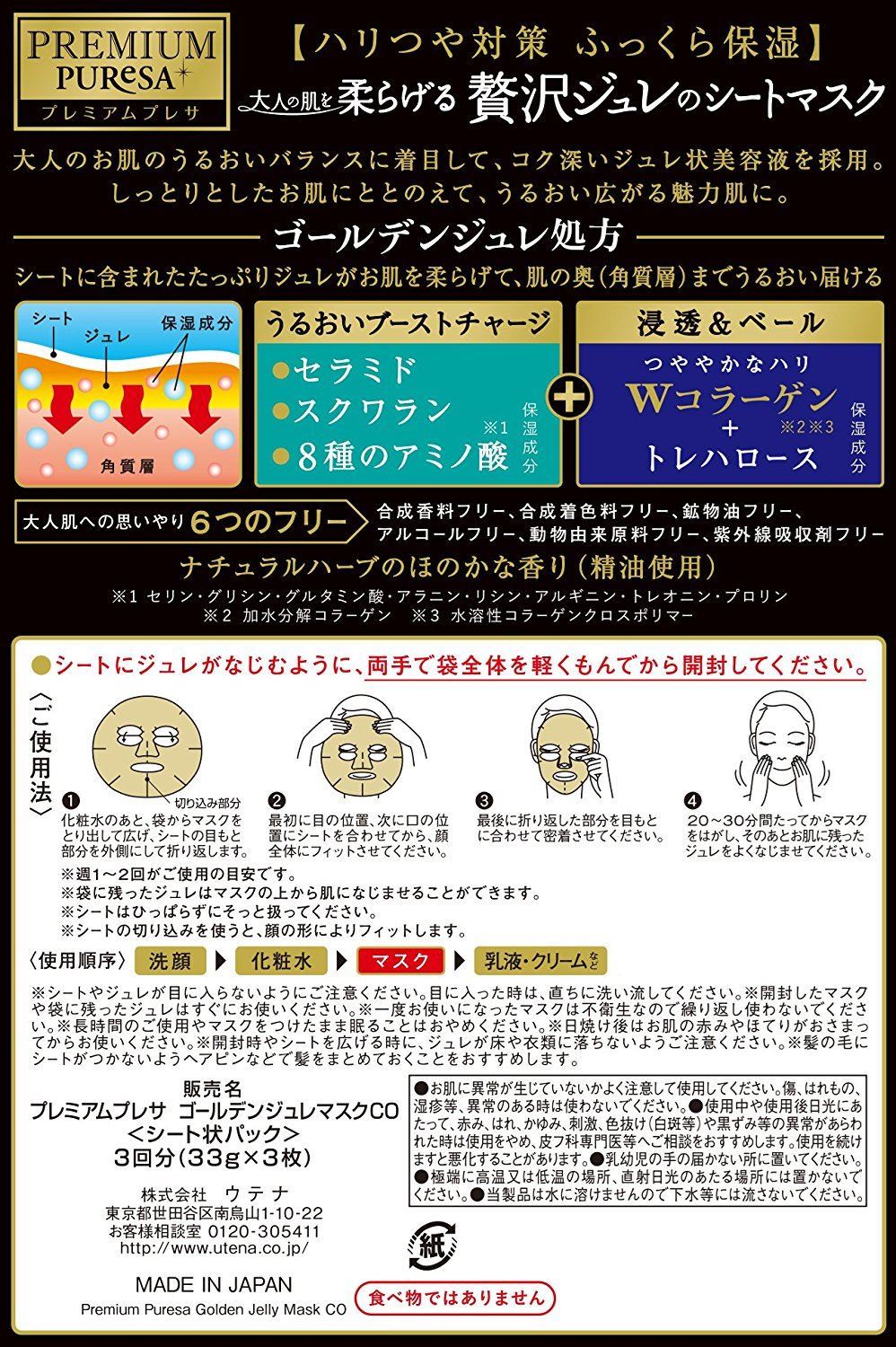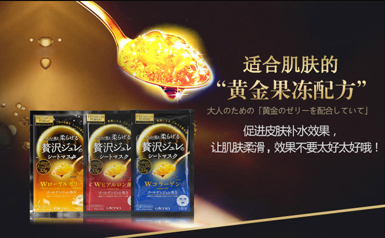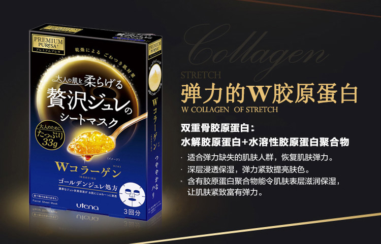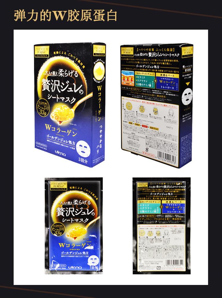 日本Utena佑天兰PREMIUM PURESA黄金级双重胶原果冻保湿面膜 三盒9片装
