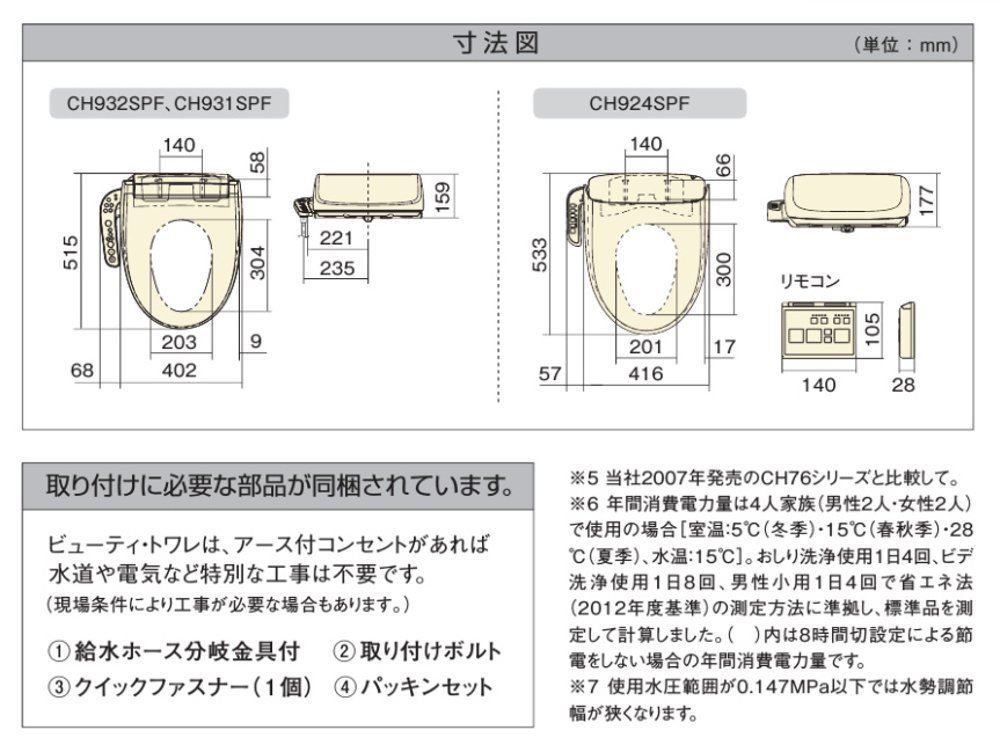 松下(Panasonic) 温水清洁马桶座 Beauty Toware CH931SPF 柔象牙色 水箱储热式 无除臭功能
