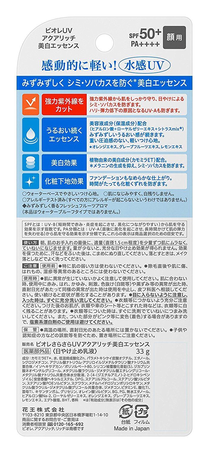 碧柔(BIORE)多效水润保湿防晒乳 清爽防晒霜 SPF50 PA++++ 33g