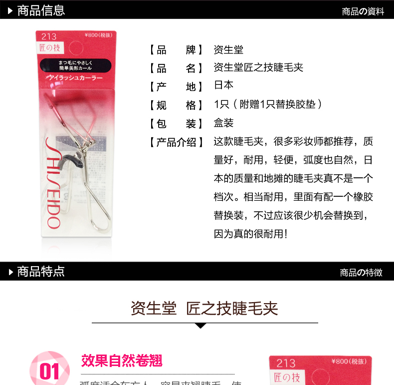 资生堂Shiseido彩妆工具 213睫毛夹配