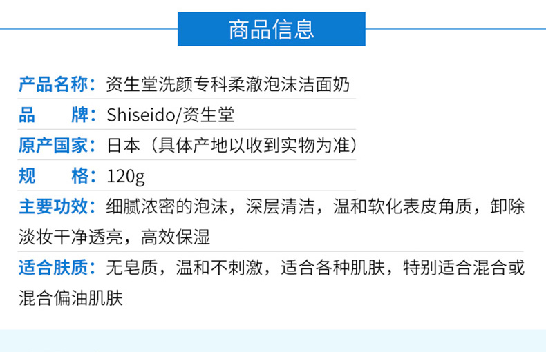 资生堂(Shiseido)洗颜专科洁面柔澈泡沫洁面乳专科洗面奶120g