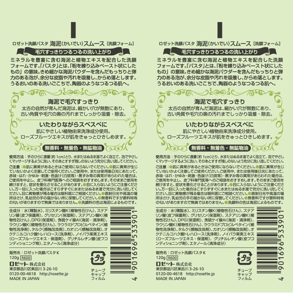 日本 露姬婷 Rosette 海泥深层清洁洗面奶 2 支套装 (120g*2支)