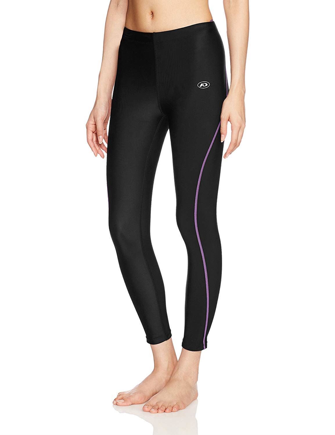 a.d.one One 女式 美腿小脚裤打底裤长裤健身裤瑜伽服长裤 黑色x紫色