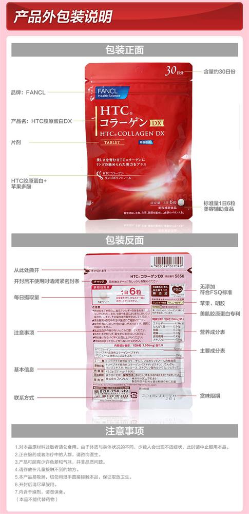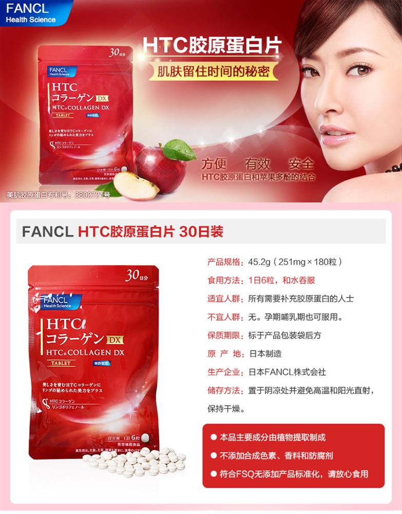 FANCL美容美肌胶原蛋白片颗粒 180粒 30日量