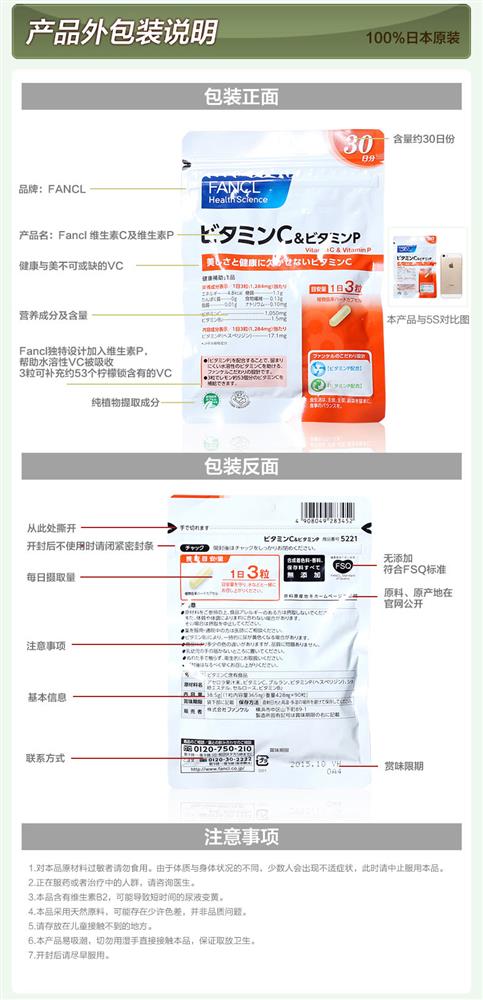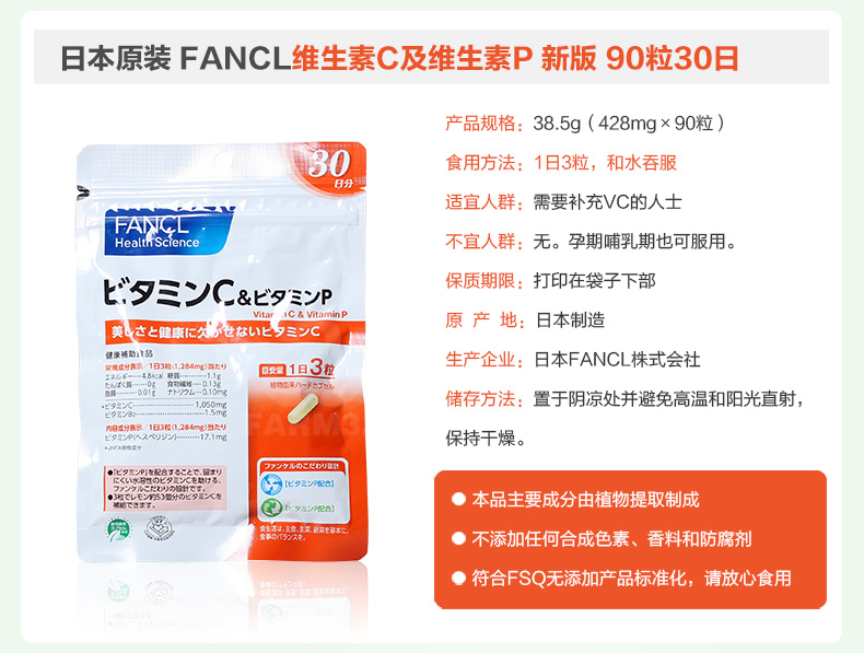 FANCL 天然混合维生素C胶囊 60粒/袋 30日量