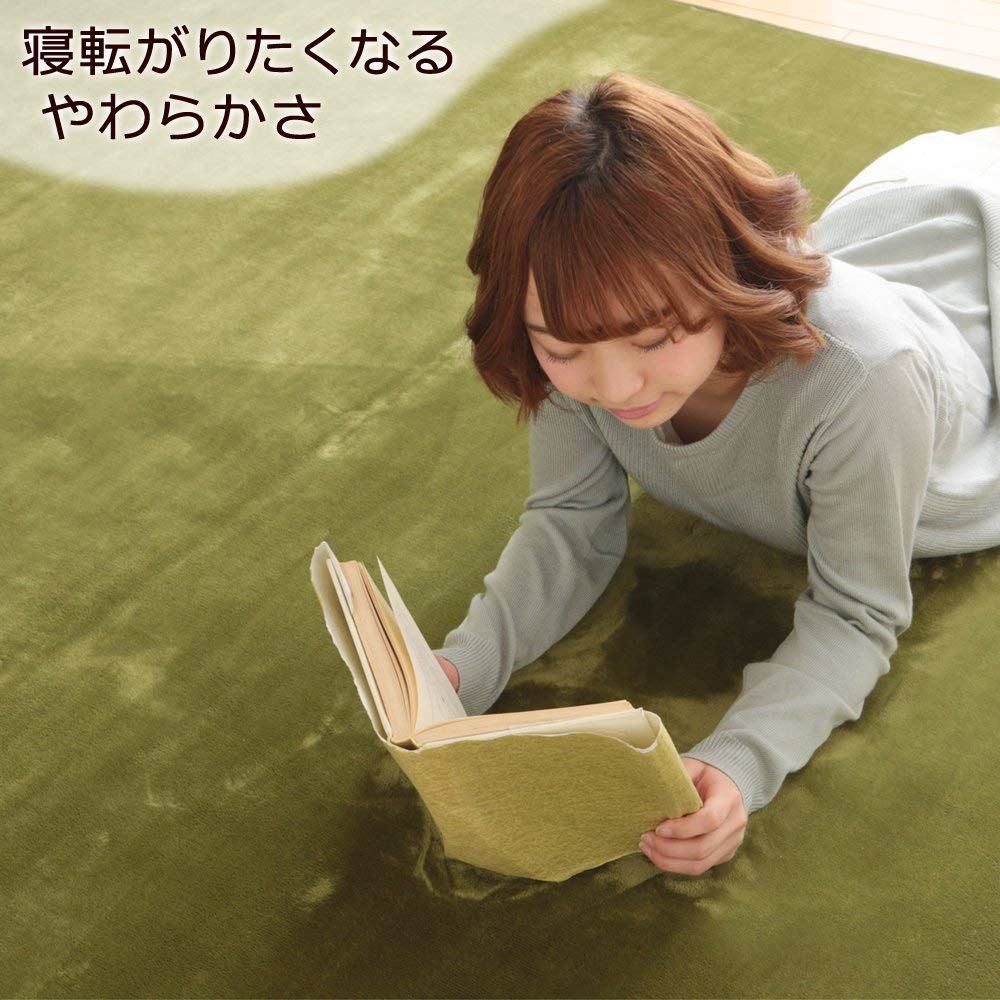 Iris 爱丽思 地毯可水洗法兰绒 绿色 185×185 日本
