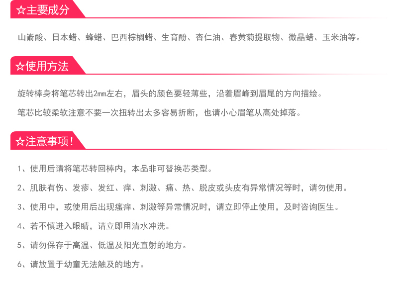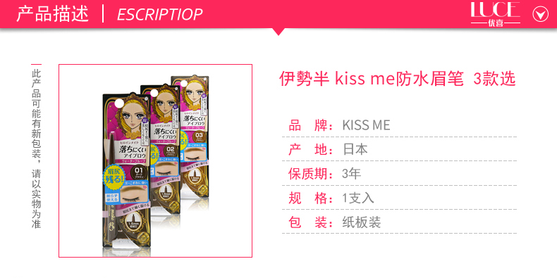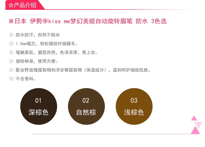 kiss me梦幻美姬自动旋转眉笔防水3色选