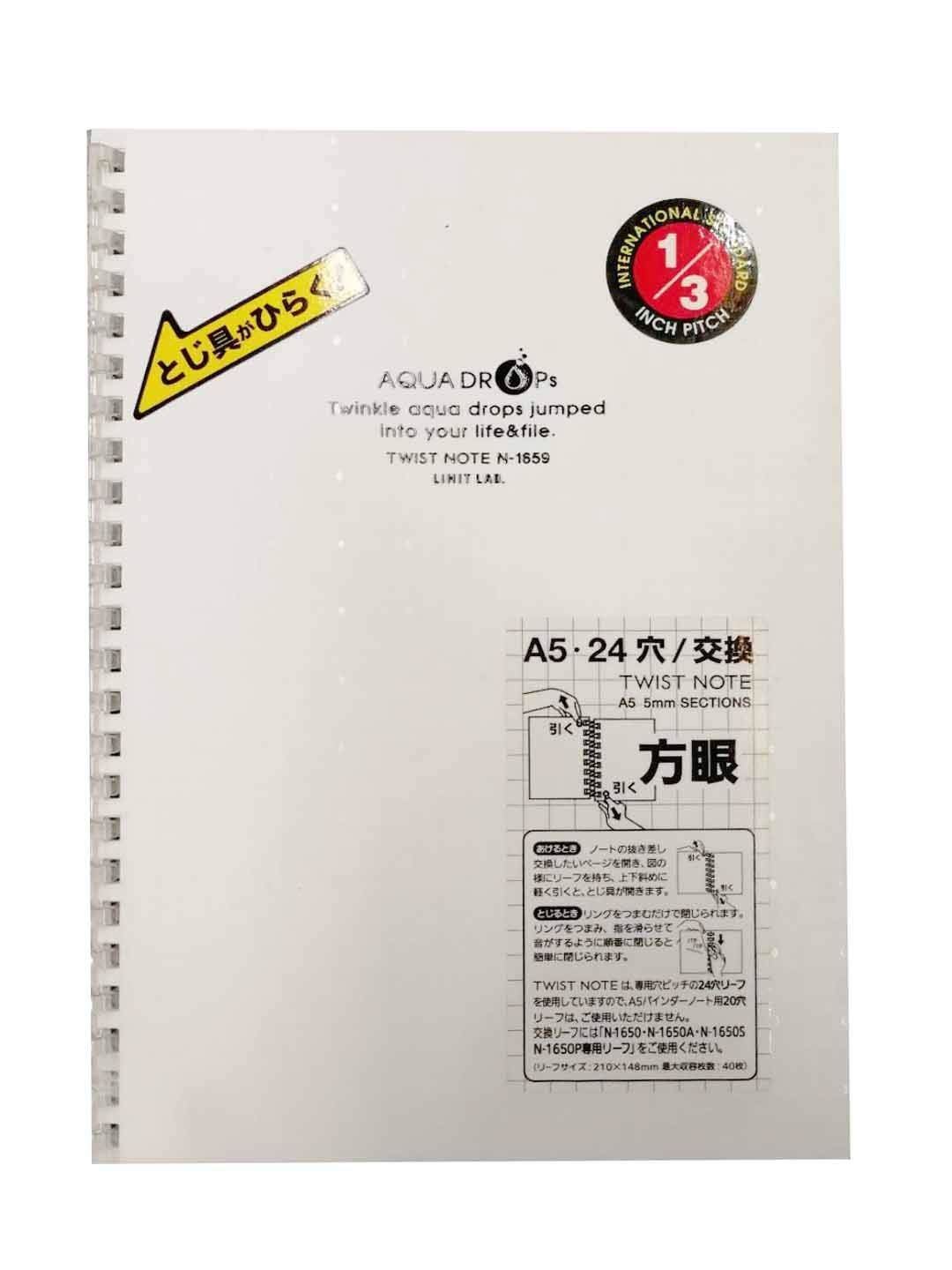 LIHIT LAB. 喜利 日本原装进口AQUA DROPs系列 活页本笔记本 易拆分封面防沷水笔记本A5 30页 方格本 N-1659-24 黑色