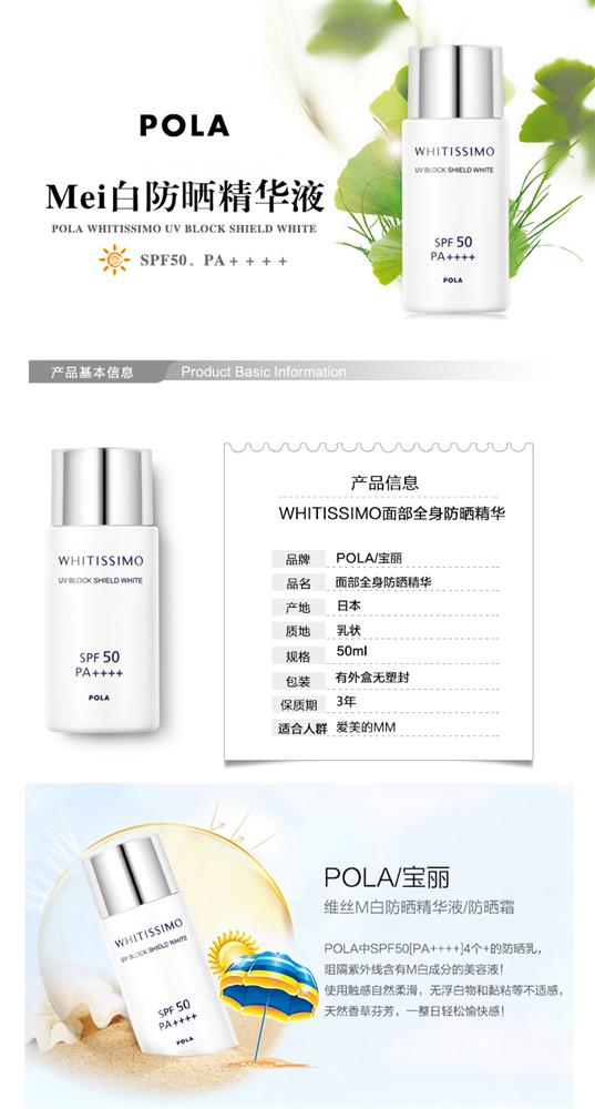 POLA宝丽防晒乳霜WHITISSIMO面部全身用美百防晒精华SPF50++++ 50ml