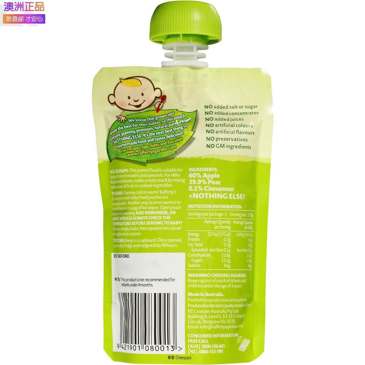 Raffertys 拉芙迪4个月以上婴幼儿水果泥辅食 苹果梨肉桂味 120g
