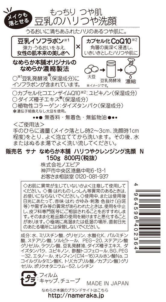 SANA 莎娜 豆乳美肌 Q10光泽弹性洁面乳 150ml/瓶